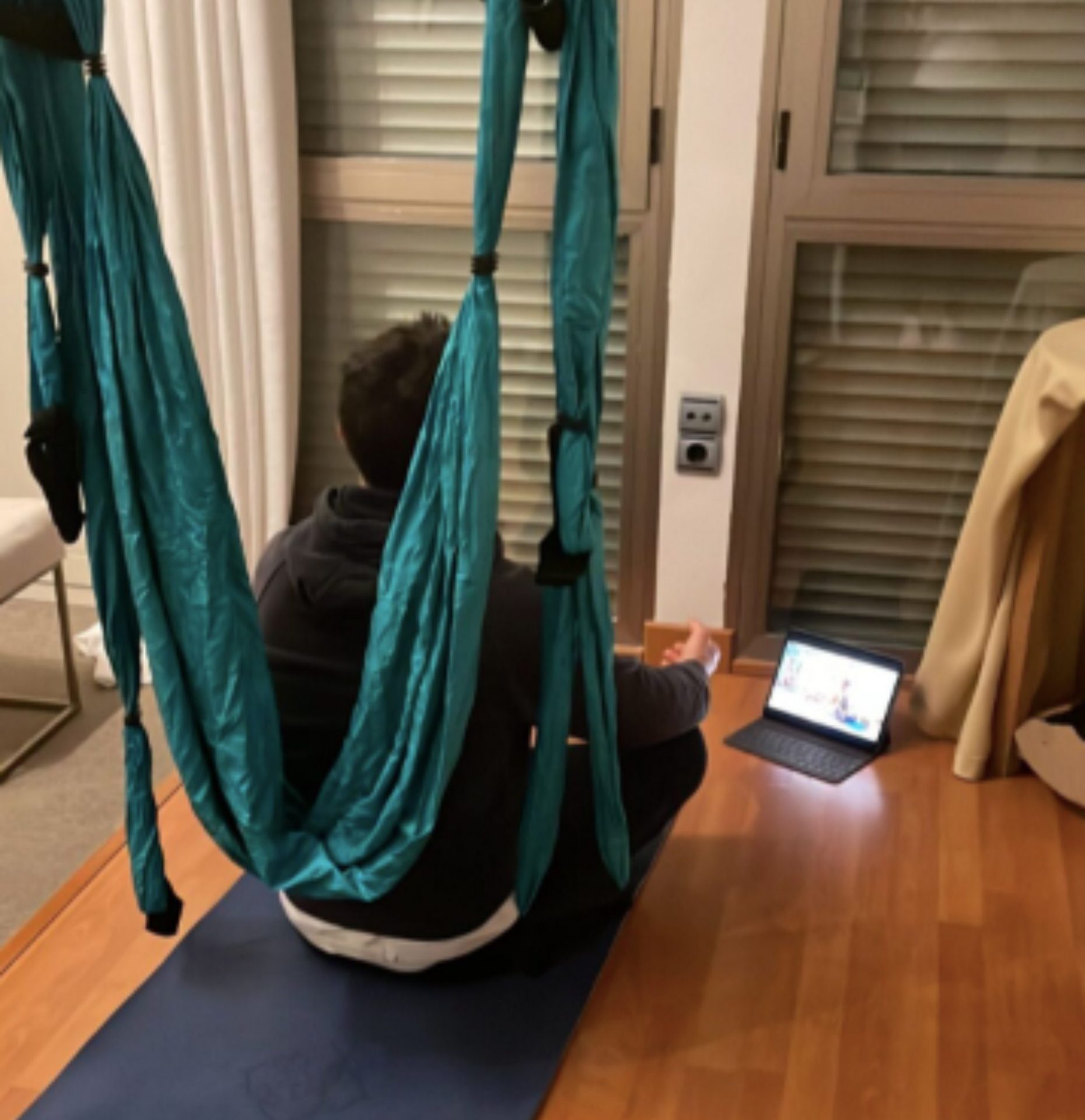 Ya no hay excusas. Descubre la serenidad y el equilibrio que ofrece el Yoga Aéreo, desde la comodidad de tu hogar.